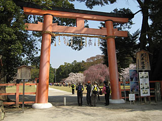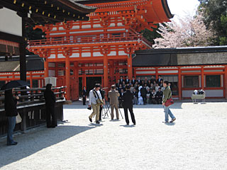 上賀茂神社の桜、東京と同様ほぼ満開。