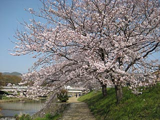 上賀茂神社直ぐそばの「賀茂川」の桜。8分咲きくらいでした。