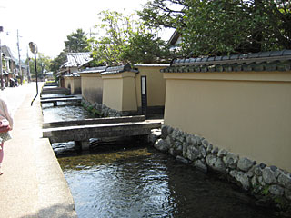 明神川沿いに、社家(神職の人々の屋敷)が並ぶ社家町