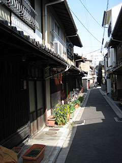 この辺りに多い、江戸時代中頃から洛中で普及した職住一体型の木造家屋。