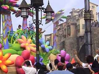 ←1時間半前にリドアイルに来て、柵のうしろに座らせてもらって、こんな感じで見ました。「リドアイルだとミッキーが大きく見える」と妻。