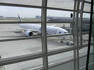 今回は、羽田から香港に飛びます。エアラインはキャセイ航空。行きの機材は、ワンワールド塗装のB777-300ER。帰りも塗装違いのB777-300ERでした。
