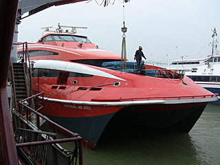 ホンコンからマカオに行くジェットフェリー、約1時間。スピードが出ている時はあまり揺れないけど、出発時、到着時はちょっと揺れます。