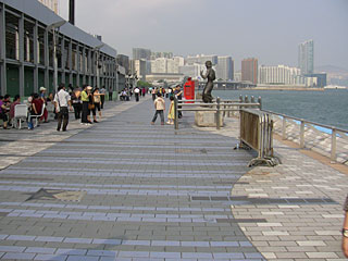 バスで尖東(East Tsim Tsui)駅近くのアベニュー・オブ・スターズ(星光大道)。香港映画界に貢献した監督や俳優を讃え、手形が埋め込まれています。