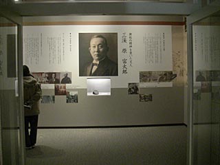三渓記念館の中にある展示コーナー。この方が明治時代から大正にかけて、生糸貿易で財をなした、原 三渓(本名 富太郎)さん。
