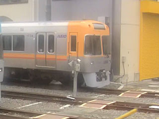 ←富士見ヶ丘の車庫にいました、「オレンジベージュ」。3両編成見えました。