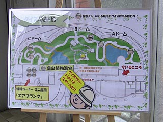 クイズラリーの「クイズのありか」。ドーム内に5つ、食虫植物温室に1つ、情報コーナー:ミニ展示に4つ、の計10個。