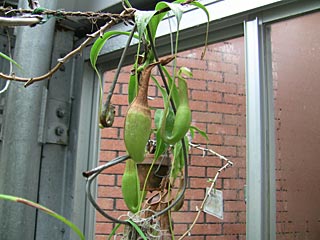食虫植物温室のウツボカズラ。どれもちょっと枯れ気味だった。