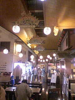 お風呂や水着エリアは撮影禁止。ここは食事のエリア(手前)とゲームコーナー(奥)。