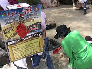 クリスタルバレーの宝石堀り。1人/1回\1,000。店の人が埋めているのだと思いますが、子供心を捉えています。