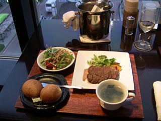当方は六魯コース(サーロイン)\2,000。地産地消の甲州ワイン(甲州ハーフボトル\1,800)も注文。