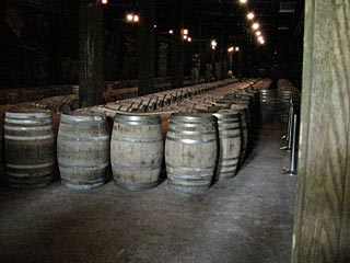 ワインセラー内部。樽は日本では作られていなくてフランス製。