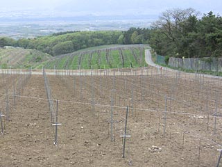 ブドウ畑。春なのでまだ植わっていない部分もありました。