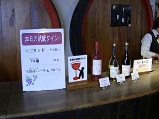バスで「登美の丘ワインガーデン」に移動、3種類のワインを試飲しました。今回は試飲がしたくて電車で来たのです。