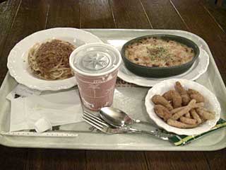 ザンビーニ・ブラザーズ・リストランテで夕食。スパゲッティボロネーゼとシーフードドリア、海老とゴボウのフリット。