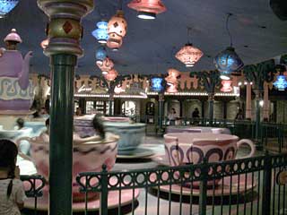 こちらは、東京ディズニーランドの「アリスのティーパーティ」。エレクトリカル・パレードをやっている間は乗り放題。