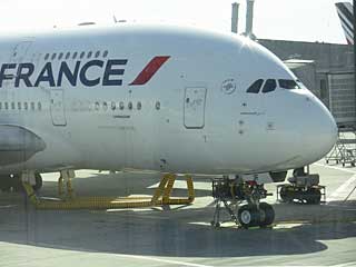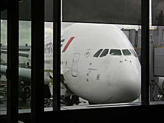 今回は、ほとんど個人旅行で、(搭乗手続きやホテルのチェックインなど)全ての手続きを自分たちで行う必要がありますが、搭乗手続きはEチケットなので、パスポートの写真のページを機械に読み取らせればチケットが出て来るし、ホテルのチェックインは、旅行会社からもらった行程表を見せればOKで、困ることはあまりありませんでした。一つ困ったのは、パリのシャルル・ドゴール空港に着いて、のんびりトイレに入っていたら、乗って来た人たちは全て移動したあとで、「どっちに行ったらいいんだ!?」。まず空港内の電車で移動して、さらに通路をかなり歩いて、そのあと、待ち行列に並ぶのですが、現地の人たちの列と、外国人の列と、乗り継ぎの列があり、案内の人がいないと分からない状態。やっと同じA380に乗って来た日本人を見つけてほっとしました。おそらく最近、A380が飛ぶようになって、機体が大きいので離れたスポットにとまるし、一度に運ぶ人数も多いので、待ち行列も長くしたのだと思います。