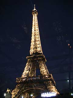 セーヌ川をクルーズしている間にすっかり暗くなりました。行列に並んで、エッフェル塔に登ります。