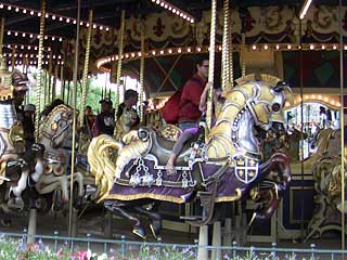 さすが騎士の国、メリーゴーランドの馬もすごい装備。