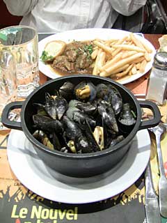 ムール貝ランチは13ユーロ。約40個のムール貝が入っていました。ベルギーが本店のチェーン店だそう。ランチを食べるビジネスマンで、にぎわっていました。