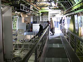 この支柱にある電気エレベータは、シュナイダー・クロゾットによって作られ、1965年に運用を開始し、1995年に新型に改められた。これがエッフェル塔で最大容量のエレベータであり、一度に110人を運ぶことができる、とあります。