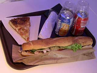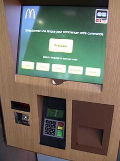 普通に買う列は結構並んでいて、機械で注文する列(クレジットカード専用)が空いていたのでトライしてみました。英語を選択して、注文するまでは問題なく出来て、最後に「下の機械の指示に従え」という画面で、カードを差し込んで、暗証番号を入れて緑のボタンを押すまでは良かったのですが、最後に下の機械に出てきた表示がフランス語で理解不能。ちょっと困っていたら、後ろのお姉さんが「カードを引き抜けば良いのよ」とジェスチャーしてくれて助かりました。