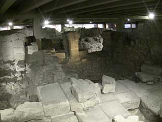 パリ最古の城壁の基礎部分(3世紀)や、小さなタイルを敷きつめた床などローマ時代の住宅の防御設備(2〜3世紀)、昔のオテル・デュー(施療院)の地下室(14世紀)などが展示されているのだそうです(説明はフランス語だけで良く分かりませんでした)。