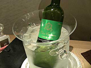ハウスワインのフルボトル(\4,000)を注文。ビールは小ビンでも\750なので、ワインが割安な感じ。調べたら、スペインのワインだった。