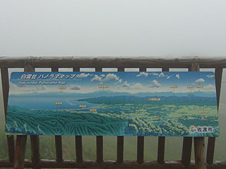 今、船で着いた両津港をはじめ、佐渡の南側半分と、天気が良ければ遠くに本州の山並みも見えるはずですが、一面の雲海で何も見えませんでした。