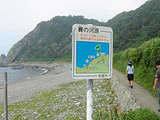 今回のツアーの売りの一つ「海岸パノラマウォーク」。願集落〜賽(さい)の河原間を徒歩で往復します。1.5km