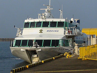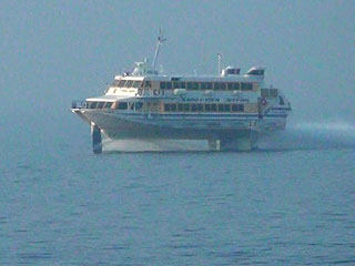 帰りにすれ違ったジェットフォイル。海面から船底まで、1.5m浮くのだそうですが、どうなっているのでしょう?