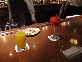 電車で来たので、お酒が飲めます。SSコロンビア号のバー「テディ・ルーズヴェルト・ラウンジ」でカクテル。