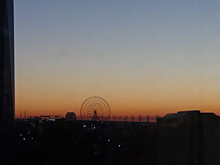 朝6:23頃、BumB東京のエレベータホールから、東の葛西臨海公園側を見たところ。まだ夜が明けていません。
