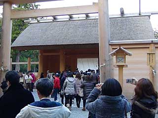 今年、式年遷宮の伊勢神宮に行ってきました。今回はJTB旅物語のツアーで、「とことん!週末気軽にお伊勢さん2日間」。新幹線(こだまですが)の往復に、1泊のホテル代も込みで2万円です。食事は付いていなくて、1日目の昼食と2日目の夕食をオプションで頼むことができます。人気のツアーで、添乗員さんは「9月から毎週末来ている」とおっしゃっていました。新幹線でトイレに行っておいて下さい とか、ゴミはバスに置かずにサービスエリアで捨てて下さい など、格安ツアーならではの気配りもありました。