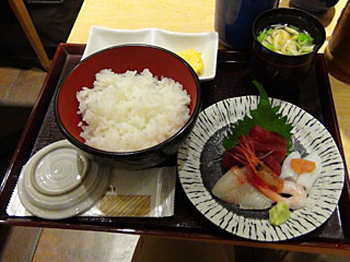 早めに東京駅に行って、駅中の「築地寿司清」で朝食。当方は刺身定食\830。