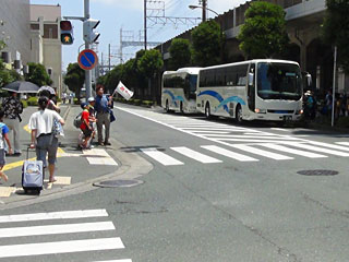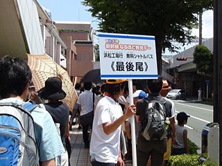 浜松駅から「新幹線なるほど発見デー」開催中の浜松工場までは、無料のシャトルバスが出ていますが、親子連れで長蛇の列。暑い中、小一時間待つことになるのだそう。
