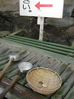 \100で、ロウソクとお線香をもらい、ざるを借ります。