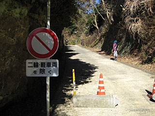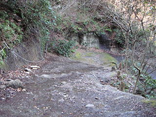 亀ケ谷坂切通。こちらは舗装されていますが急こう配の坂道です。