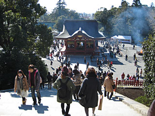 冬の鎌倉は思ったより空いていました。鶴岡八幡宮は、受験の絵馬を書く人がたくさん集まって、混んでいました。