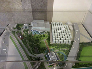 工場の模型。工場の裏にある100本もの巨大なタンクは、ビールの発酵・保存用コニカルタンク。
