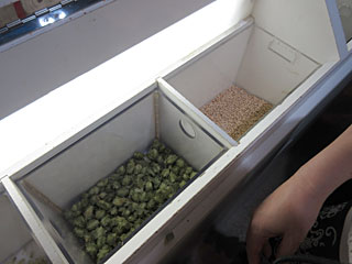 ビールの原料、麦とホップ。麦も食べさせてもらえます。甘い味がしました。
