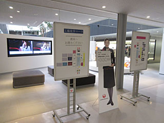 JALの工場見学〜スカイミュージアム〜は、JALの歴史や現在の商品・サービス、そして安全で快適な空の旅を支えているスタッフの仕事を紹介する、というもの。工場見学コースは展示エリア、航空教室、格納庫見学、の3つで構成されています。航空教室で飛行機についてお勉強したあと、17人くらいづつ、5つのグループに分かれて格納庫を見学しに行きます。参加者はやっぱり小学生くらいの子供連れの親子が多かった(小学生未満は参加不可)。