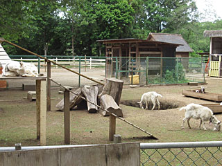 どうぶつゾーンのヤギ。高いところで寝るのが好きのようです。