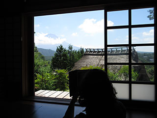 山の斜面に茅葺き屋根の集落があり、クイズラリーをしながら回りました。