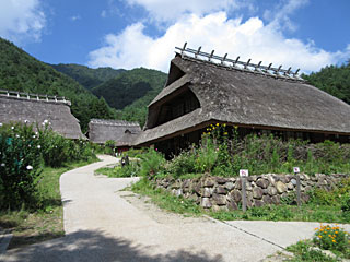 西湖 いやしの里 根場(ねんば)は、西湖を望む南の斜面に、以下のような20軒ほどの茅葺き屋根の家がありました。