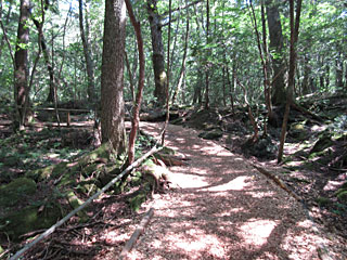 西湖 コウモリ穴は、初めて行きました。受付でお金を払ってヘルメットをもらい、しばらく青木樹海を歩いて行くと、洞窟があります。コースの一部は本当に天井が低く、這うようにしないと通れない感じだったので、我々は短縮コースを使いました。洞窟の天井にびっしりコウモリが付いているのかと想像していましたが、もっと奥で寝ているようで、一匹も見つかりませんでした。コウモリ穴は、富士山の他の洞穴と違い、夏でもそれほど寒くなく、冬も暖かいため、コウモリの冬眠場所に良いのだそう。