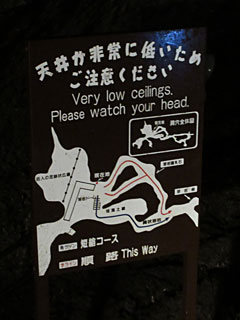 順路の図。赤いコースは本当に天井が低かったので、我々は青の短縮コースを進みました。それでも頭をぶつけたので、借りたヘルメットが役に立ちました。