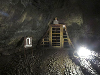 ここが、見学コースの最終点。木のドアも穴が開いていて、人間はここから先は行けませんが、コウモリは奥から出て来られるようになっています。