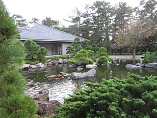 きれいに整備された日本庭園。建物はしおさい博物館。