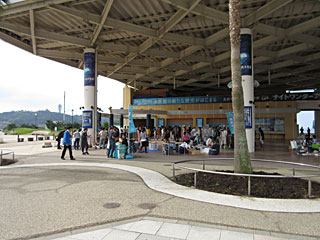 手にスタンプを押してもらって、昼食を兼ねて、新江ノ島水族館を一度出てきました。